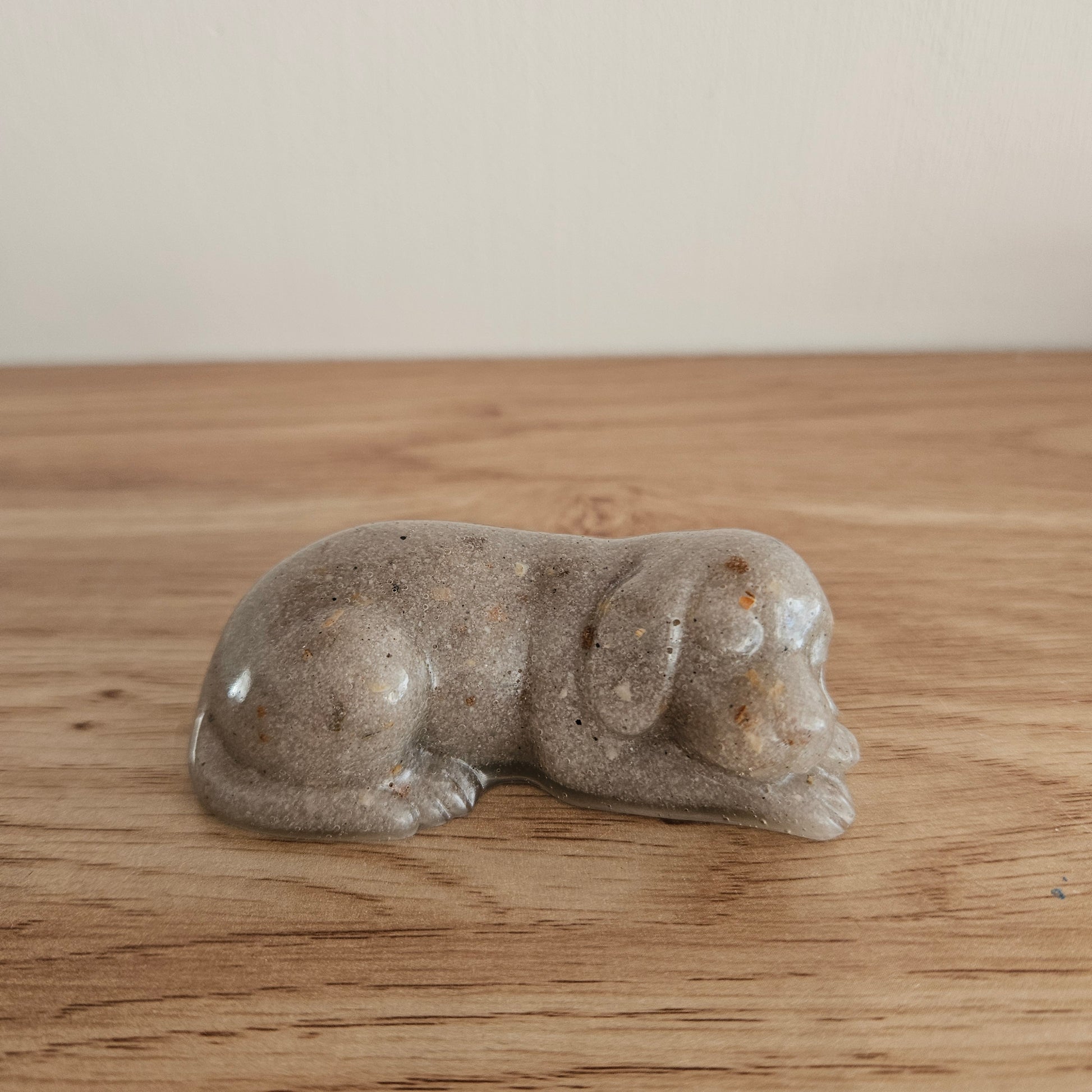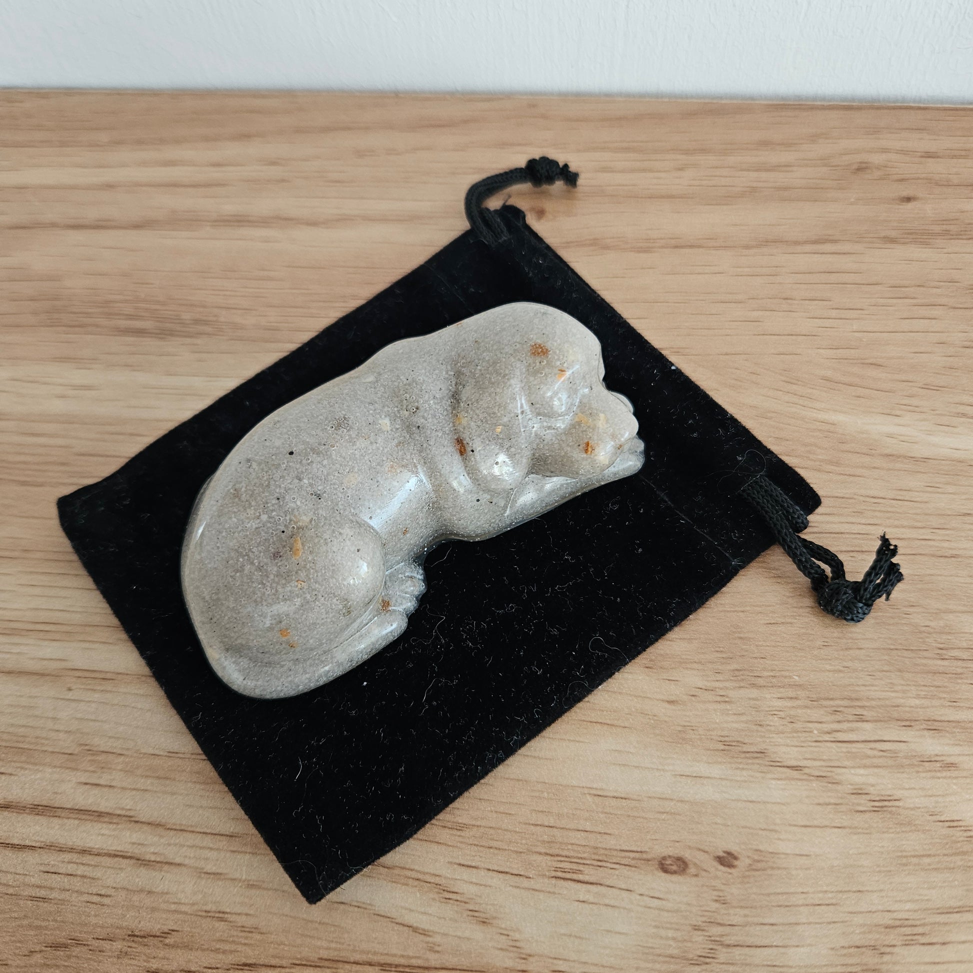 Ons handgemaakte Epoxy Herinneringshondje 1 (ca.8 x 4x 3 cm) wordt speciaal voor jou gemaakt en kan zowel as als haar of een combinatie daarvan bevatten. Zo ontstaat een blijvende en tastbare herinnering aan jouw dierbare.